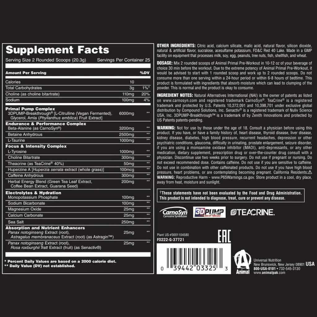 Uncage your inner Animal with Primal Preworkout. You know what we're talking about-that savage instinct that you possess deep down inside, and when it's unleashed, your training goes next level, allowing you to dominate the weights with unbridled energy and intensity. Animal Primal Preworkout is the ultimate ergogenic training partner designed to keep up with you and push you to your limits. Train vicious. Train hard. Train Primal.